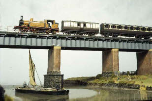 Right - another shot of the Arun barge (overall winner of the Scaleforum Chairman’s Cup in 1995). A train of arc roofed Billinton coaches heads over the bridge behind ‘Victoria’.