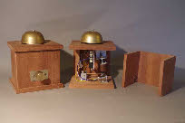 The boxes are about 100mm cube, and are in two parts. The base, one side and top form one part, and all the components are attached to this, so that the bell can be set up and adjusted easily. The other part consists of the other three sides, and simply slots in place to form a complete box.