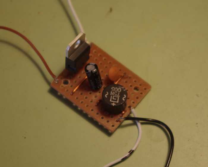 These kits are fairly easy to make - the first one took a couple of hours, but having worked out what to do, the second took about half the time. These kits need a precise smoothed 12V DC supply to work properly. I have various supply voltages available across the layout for different purposes (5v AC, 15v AC, 21v DC), but not 12v DC. To provide the necessary voltage I also made a MERG kit of a 12V supply unit (powered by 15v AC) shown in the photograph (right). My assumption was that putting this together with the EZYpoints kit would give me a solution. Unfortunately it didn’t work - instead of the servos turning steadily and slowly they cause the gates to move in random jerks.