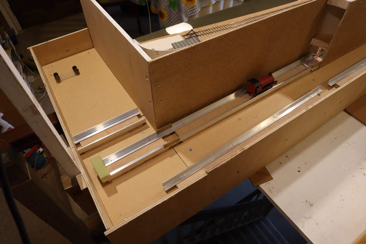 The fiddle yard is now finished, with space to rotate three cassettes, and storage for spare locos and stock.