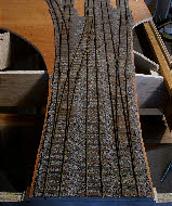 All the track has been built on Templot templates, and I was a bit concerned that I would damage the track removing the paper templates, and particularly that the turnouts would lose their shape because they use interlaced sleepering which is inherently less rigid than more ‘modern’ trackwork using full length sleepers. My fears were not realised - using Pritt stick to fix the sleepers to the templates has been successful in that the template can be removed easily (much better than double sided sellotape). I think also that painting the track edges helped fix the functional chairs to the rail, and hence kept the turnouts reasonably rigid.