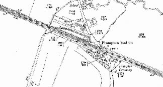 Left -a map of the station from around 1910, showing the layout of the goods yard, the main buildings, and the acute angle of the level crossing.