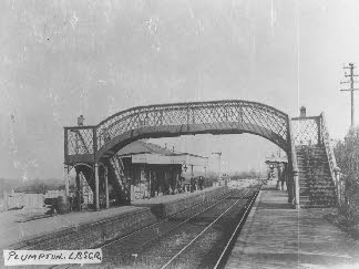 Left - an undated view showing the original crossing gates, and also the original signal cabin, although subtly different from the view above.