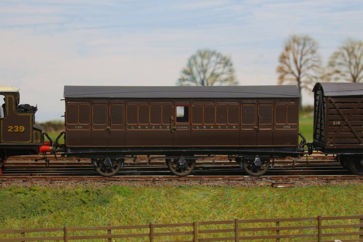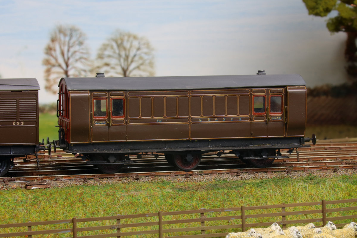 The first vehicle is a butter van (D149), based on a drawing in Newbury’s 1975 book of Brighton coaches, and also shown in the more recent vol 2 of Ian White’s series on LBSCR carriages. I started this scratchbuild sometime around 1990, but got stuck cutting out the 40 or so washer plates, and their associated bolt-heads.