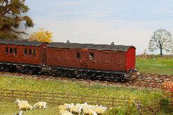 On the left is a Grand Vitesse van - a Microrail kit, D222. They were principally employed on the Grande Vitesse services to Newhaven, and also possibly to convey fruit and vegetables from Worthing. On the right is a passenger luggage van, D130, a Branchlines kit.