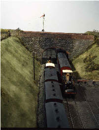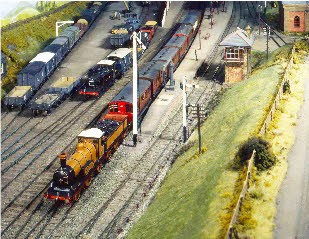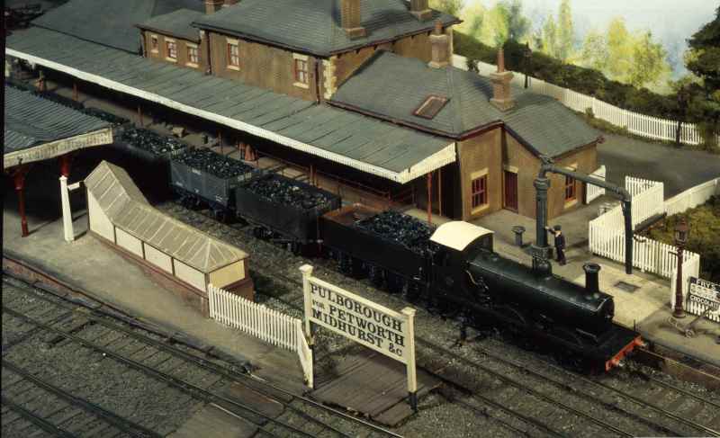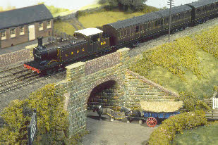 Right - another shot of the Arun barge (overall winner of the Scaleforum Chairman’s Cup in 1995). A train of arc roofed Billinton coaches heads over the bridge behind ‘Victoria’.