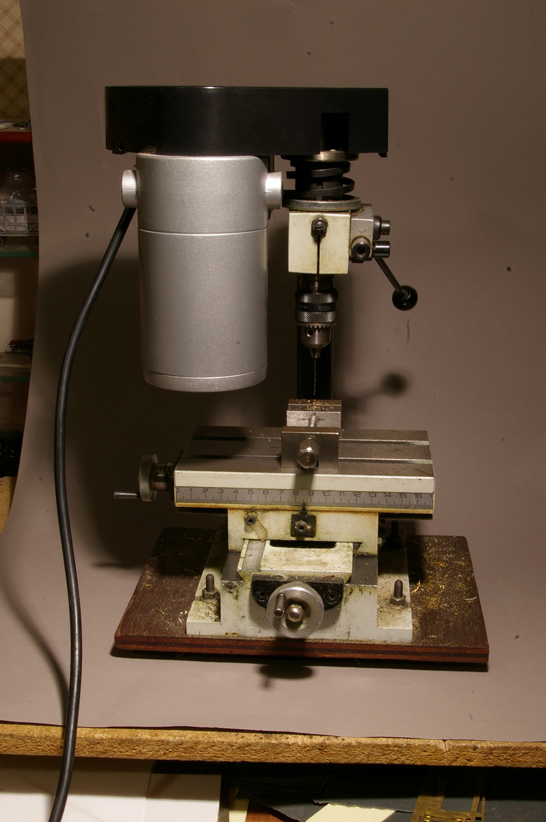 This is a Unimat 3 milling machine and milling table. It gets used a lot as a vertical drill (it saves a lot of broken drills) and less often as a milling machine. My skills as a machinist are not great, but I’ve successfully milled for example, loco coupling rods and hornguides.