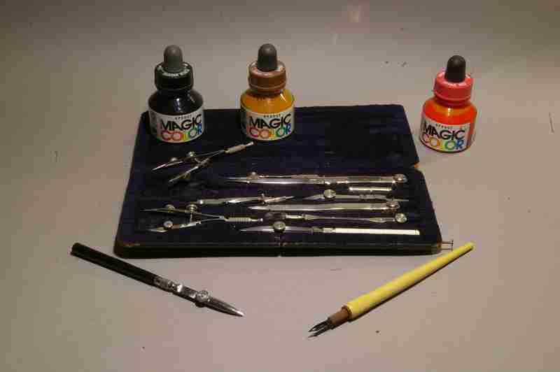 I have a range of pens for lining and lettering - bow pens, mapping pens, Rotring pens. My favourite bow pens are the oldest ones - my father’s from the 1950’s, and better than more recent ones that I have bought. I have in the past used opaque ink for loco lining, but I have developed my technique a bit more and now use enamel paints.